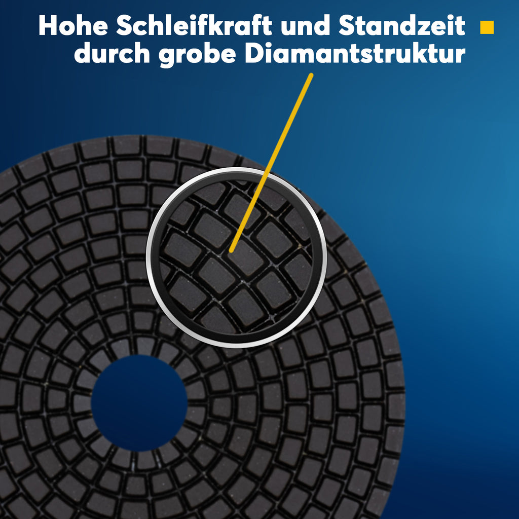 Hier eine Übersicht über die Eigenschaften unserer Diamant-Schleifpads