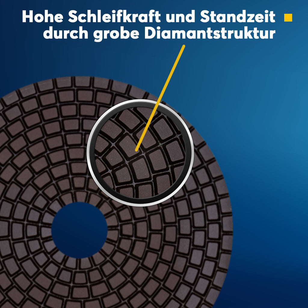 Hier eine Übersicht über die Eigenschaften unserer Diamant-Schleifpads: